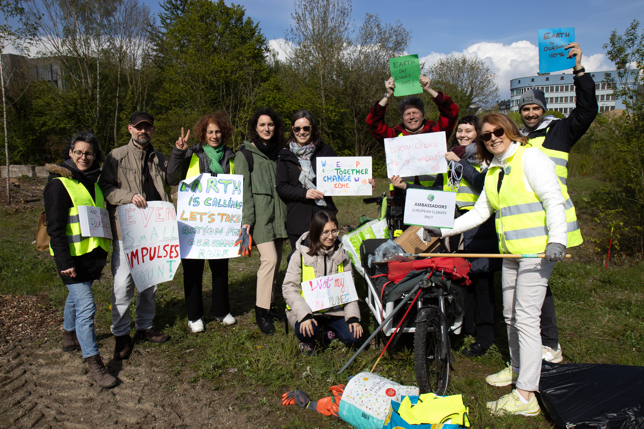 Several Pact Ambassadors and friends as they got ready for the "Marche pour la terre" on Earth Day, Luxembourg, 22 April 2024.Several Pact Ambassadors and friends as they got ready for the "Marche pour la terre" on Earth Day, Luxembourg, 22 April 2024.